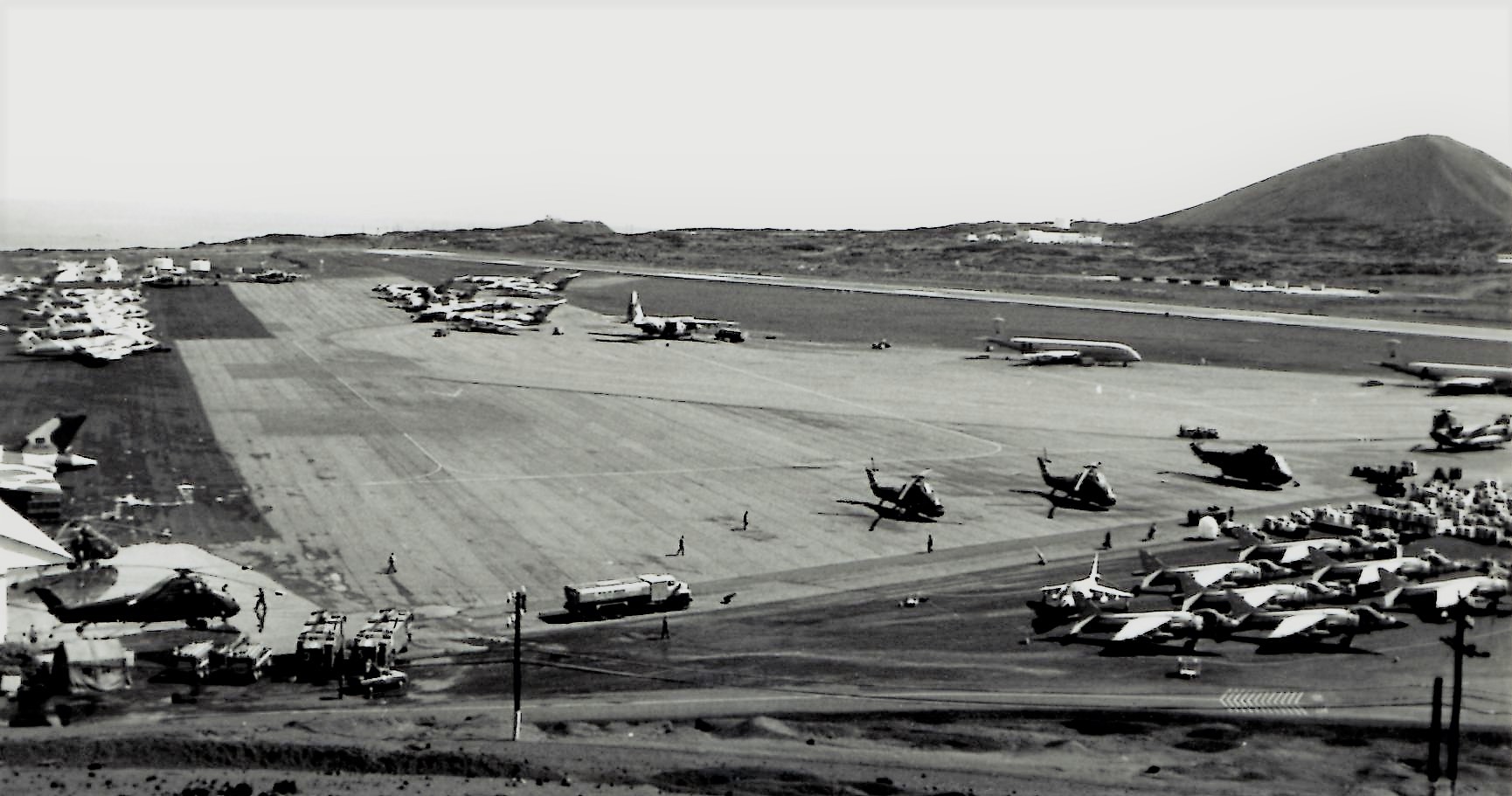 On 2nd April 1982 Argentina landed commandos near Stanley and the invasion of the Falkland Islands had begun. The UK government was quick to respond signalling their intent to recapture the islands by assembling a naval Task Force. The Carrier Battle Group swiftly set sail, departing Portsmouth on 5th April with twelve Sea Harrier FRS 1s (SHARs) embarked on HMS Invincible and 8 embarked on HMS Hermes- Nos 800 and 801 Naval Air Squadrons (NAS) respectively. Additional vital stores would be flown to Ascension Island and transported to the group when within range. This would include 8 additional SHARs of the newly reformed No 809 NAS, taken from the training unit and stored spares, and ten RAF Harrier GR3s of No 1 Squadron. These aircraft were to be flown from UK bases to Ascension Island using Victor K2 air to air refuelling tankers based at RAF Marham. The Harriers would then be landed vertically on MV Atlantic Conveyor which would sail south and transfer them to the Carrier Battle Group.